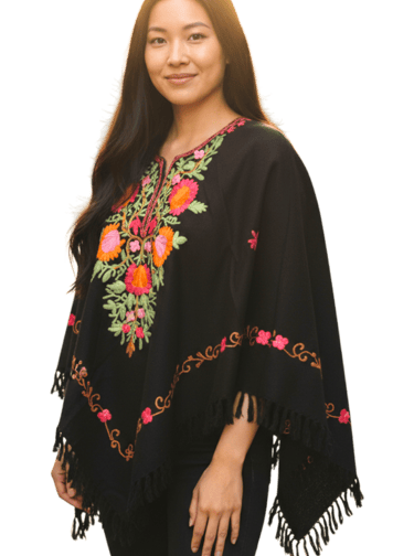 Kashmir is renowned worldwide for its exquisite embroidery, often done with delicate needlework in floral and paisley motifs. This embroidery, also called “Kashida”, transforms simple wool into an elegant canvas of art. Each poncho tells a story of Kashmiri tradition—handcrafted patterns inspired by the region’s breathtaking landscapes.